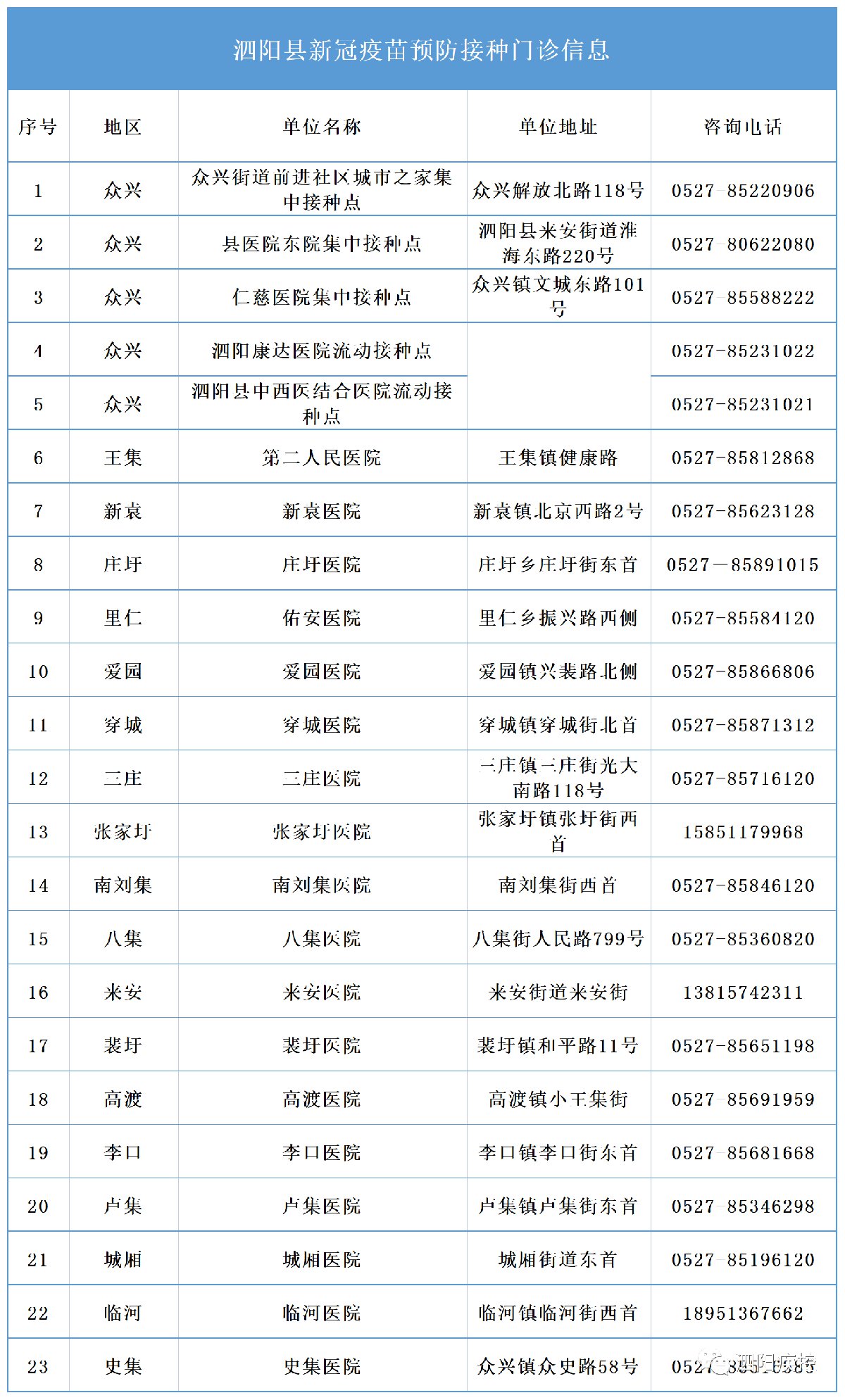 宿迁泗阳新冠疫苗接种点汇总