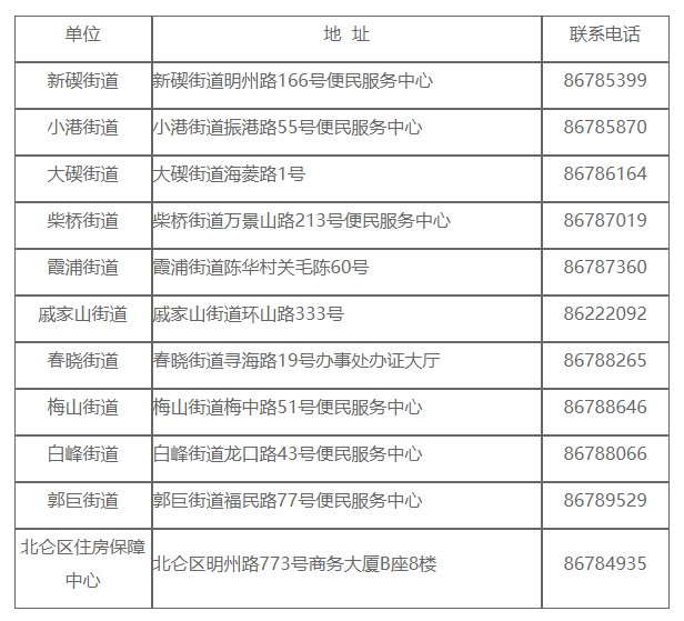 各街道积分窗口地址及电话