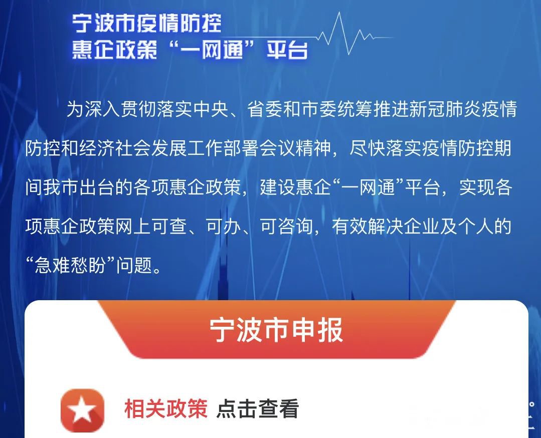 “宁波市疫情防控惠企政策一网通平台”已正式上线。这些惠企政策如今不需跑窗口,只需要在手机里,就能足不出户在线办理!