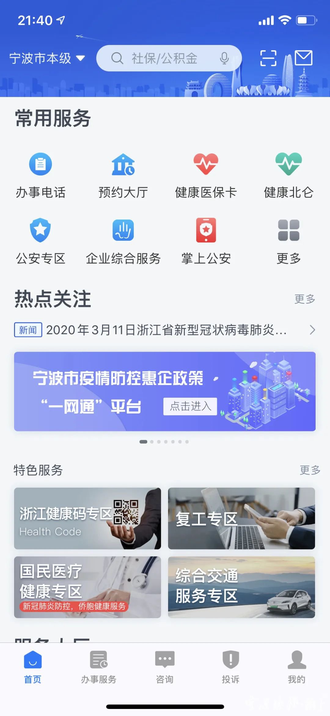 第一步:下载APP,城市选择“宁波市”,在首页进入“宁波市疫情防控惠企政策一网通平台”