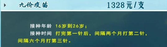 其中,二价疫苗接种的年龄是9到45岁,接种时间是打完第一针后,间隔一个月打第二针,最后间隔六个月打第三针。