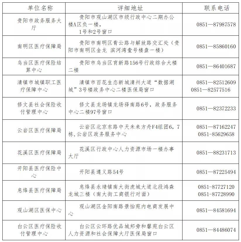 贵阳市各级医保经办机构地址及联系方式: