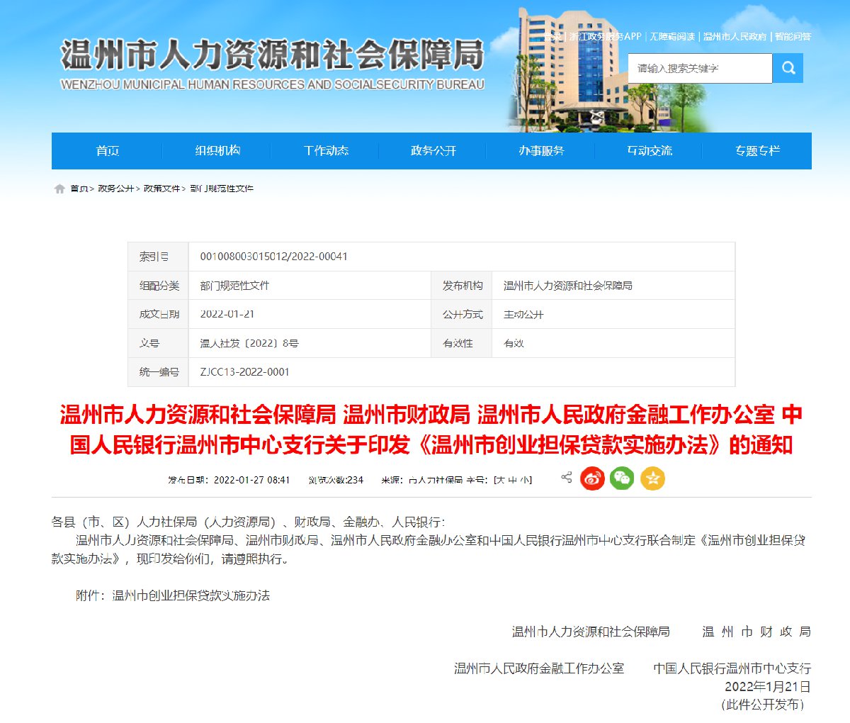 温州市创业担保贷款实施办法