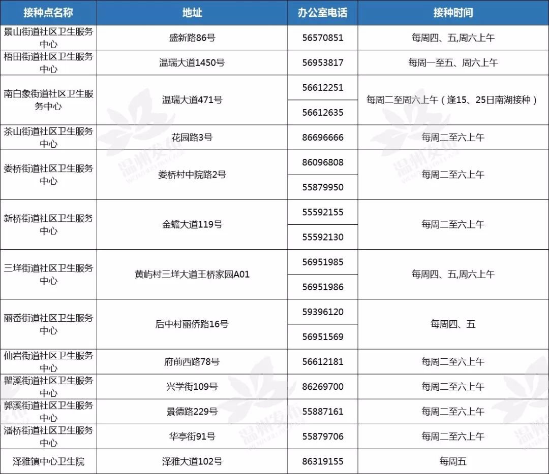 接种地址:温州市信河街大士门27号温州老年病医院
