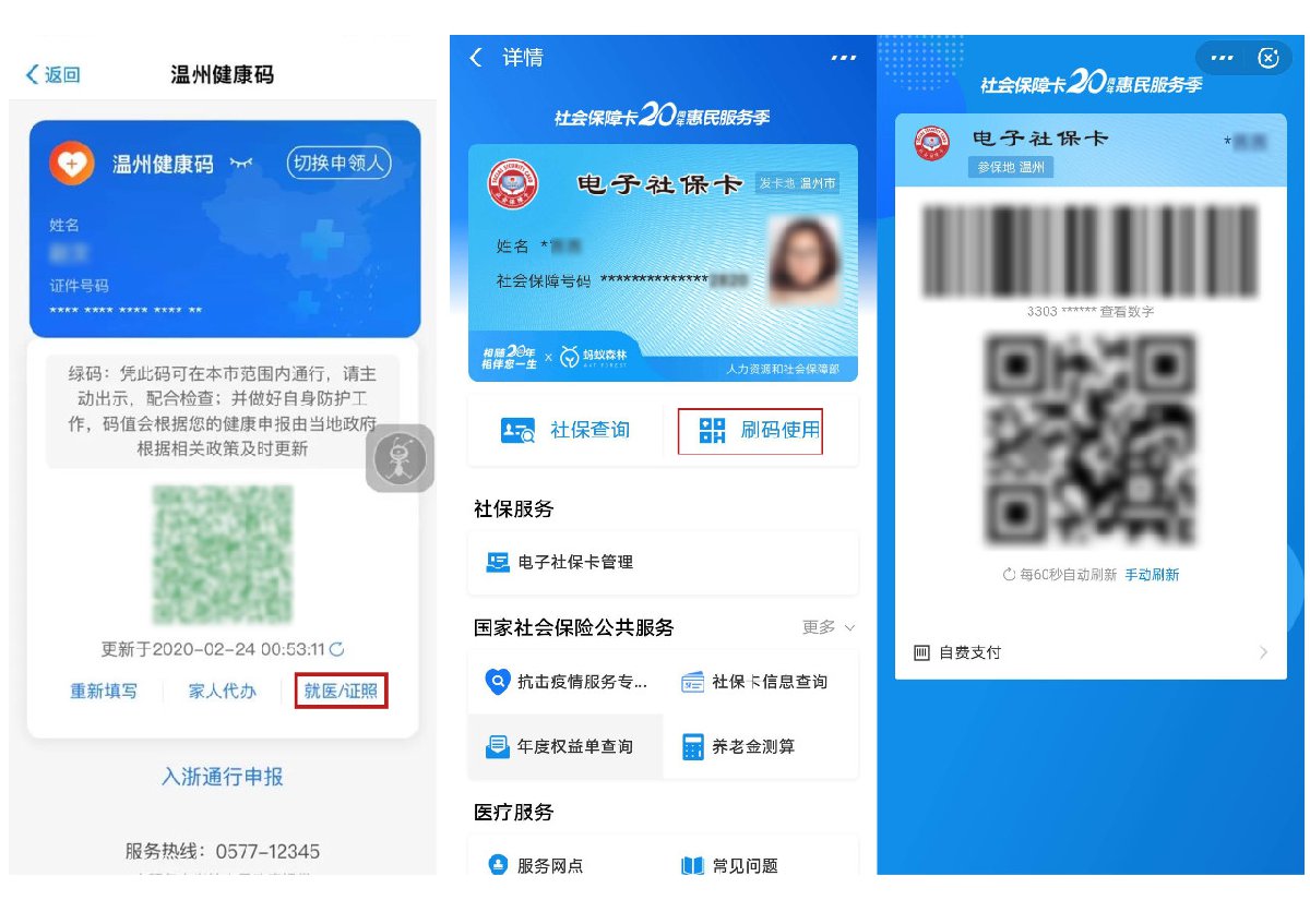 温州“健康码”和“电子社保卡”实现互联互通项功能已在2020年2月24日晚上8点正式上线。