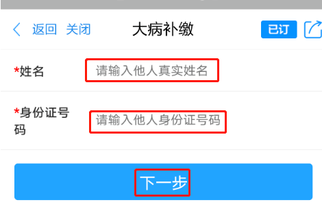 第2步:选择本人大病补缴或帮他人大病补缴→输入姓名和身份证号码,点击“下一步”→选择需要购买大病保险的份数,点击确定