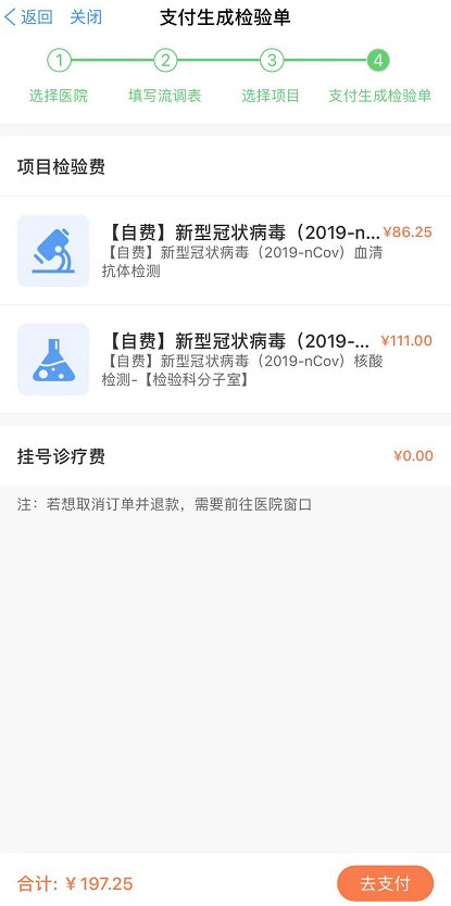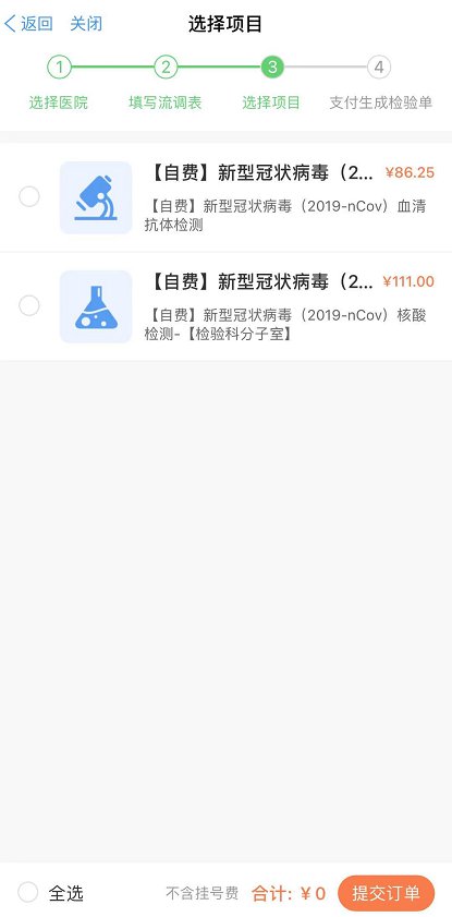 ④选择好检测项目,核酸检测和血清抗体检测,然后提交订单。