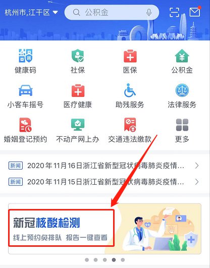 ①首先下载好“浙里办”APP,然后打开APP,找到“新冠核酸检测”专区,点击进入。