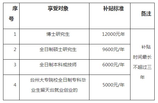 2020台州天台县高校毕业生租房补贴的补贴标准