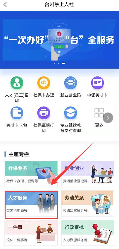 3、进入“台州掌上人社”后,点击“人才服务”。