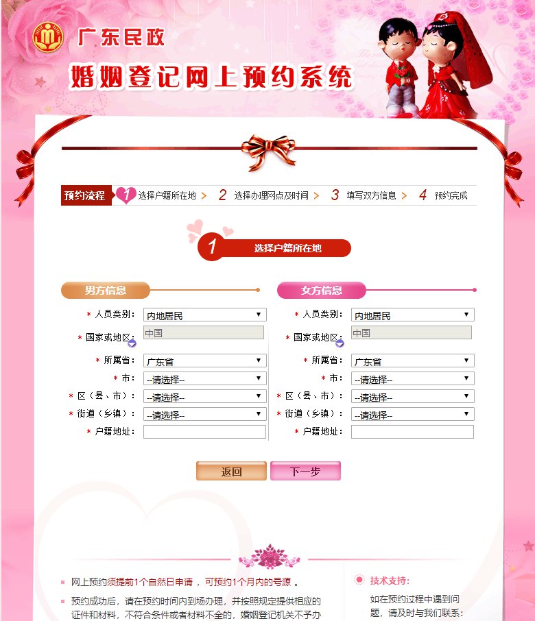 第一步:登录网址http://www.gdzwfw.gov.cn/portal/personal/hot?region=440100,下拉选择“人生事件——结婚预约登记”,进入婚姻登记网上预约页面;