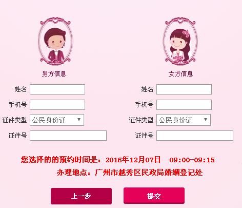 2、预约成功后,请在预约时间内到场办理,并按照规定提供相应的证件和材料,不符合条件或者材料不全的,婚姻登记机关不予办理;取消预约须至少提前一天申请。