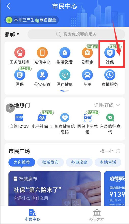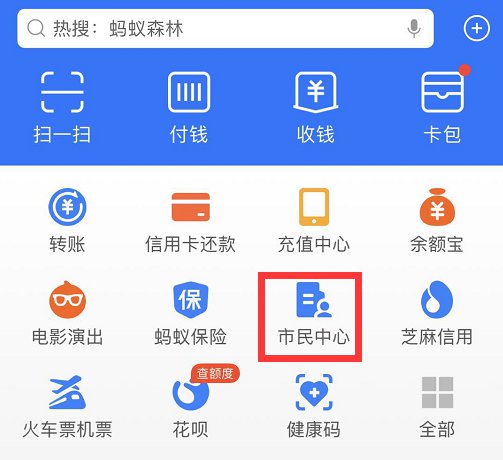 ① 打开支付宝→点击【市民中心】