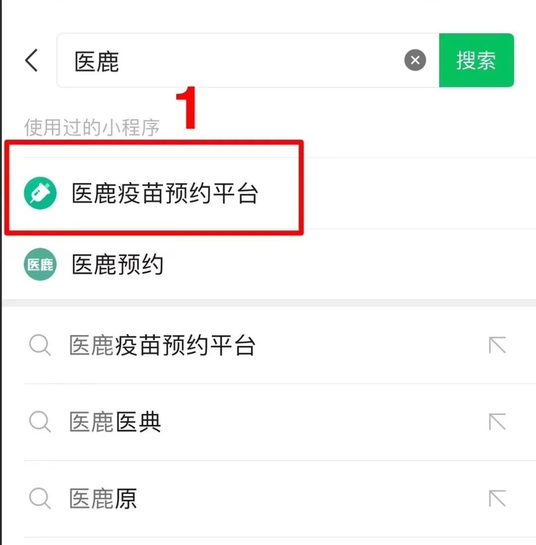 第一步:微信搜索小程序:医鹿疫苗预约平台,如下图所示: