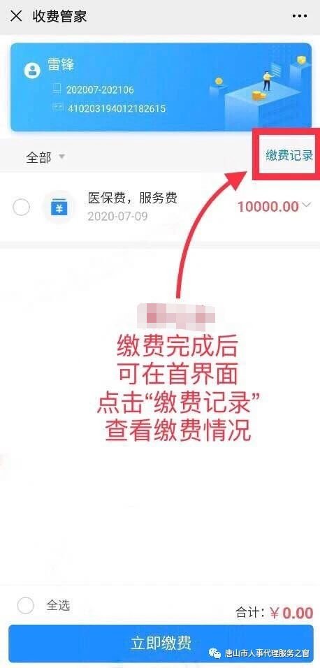 缴费成功后再次输入身份证号码登录后,可点击“缴费记录”查看缴费凭证。