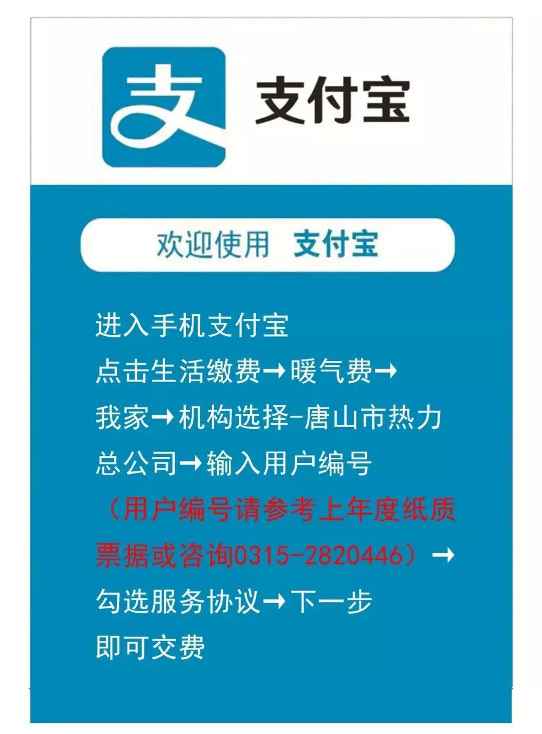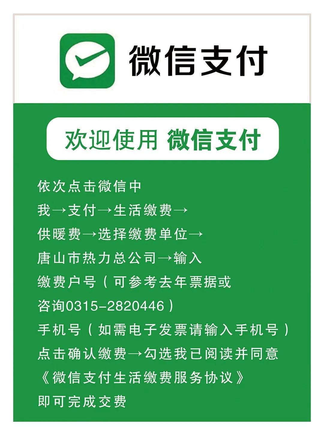 您可通过唐山热力微信公众号、支付宝生活缴费、微信钱包生活缴费(因微信钱包生活缴费平台隐藏了部分用户信息,请认真核对后交费)渠道交费;