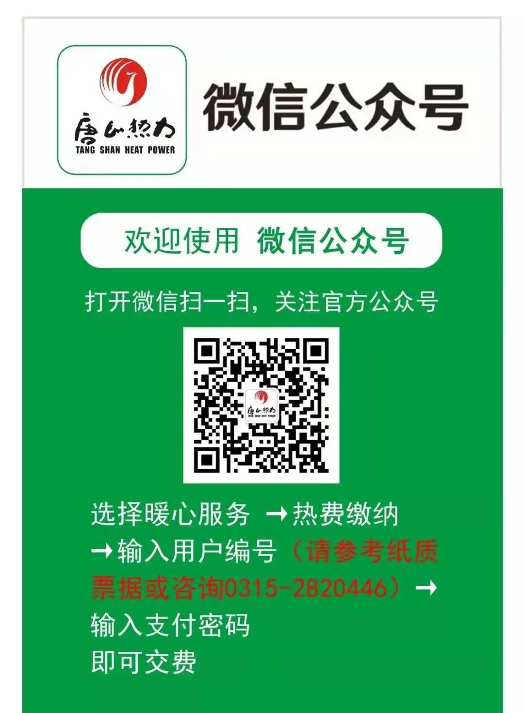 2、通过热力微信公众号、支付宝、微信钱包、银行电子渠道支付交费尚存区域和条件限制:通过银行电子渠道、热力微信公众号、微信钱包、支付宝支付交费的,仅限于唐山市热力总公司供热所管辖范围内(华烨公司管辖服务范围内的热用户可以选择支付宝、微信钱包、河北银行手机APP方式交纳)往年无陈欠热费的直管居民热用户,暂不支持公建单位、底商、代收代缴区域的居民用户。