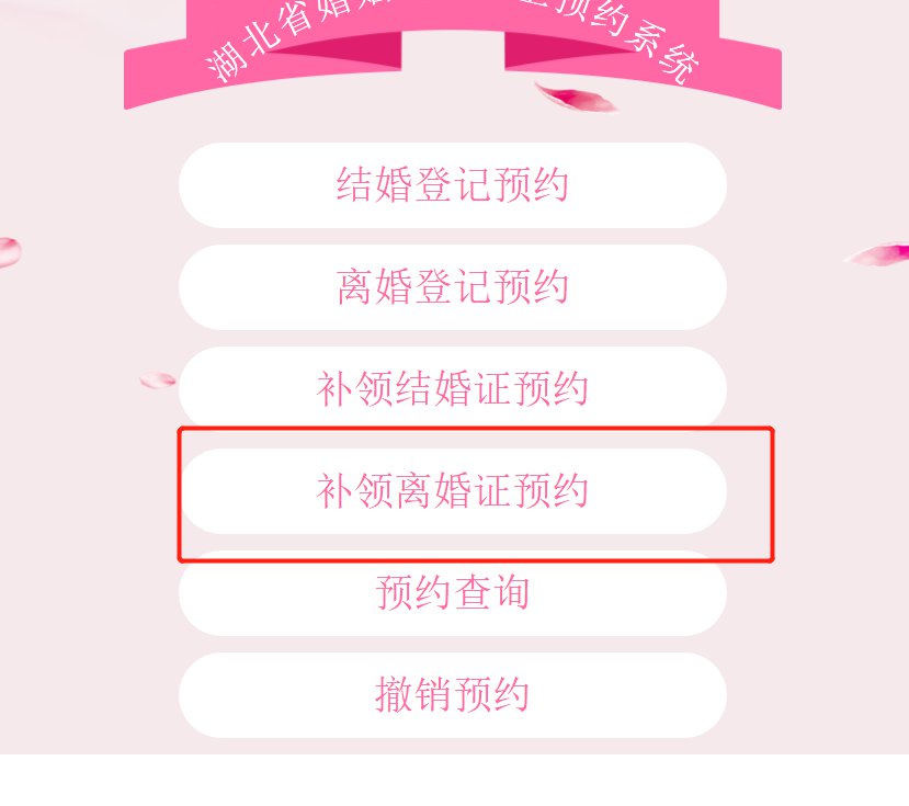 然后,点击“补领离婚证预约”,然后点击“同意”
