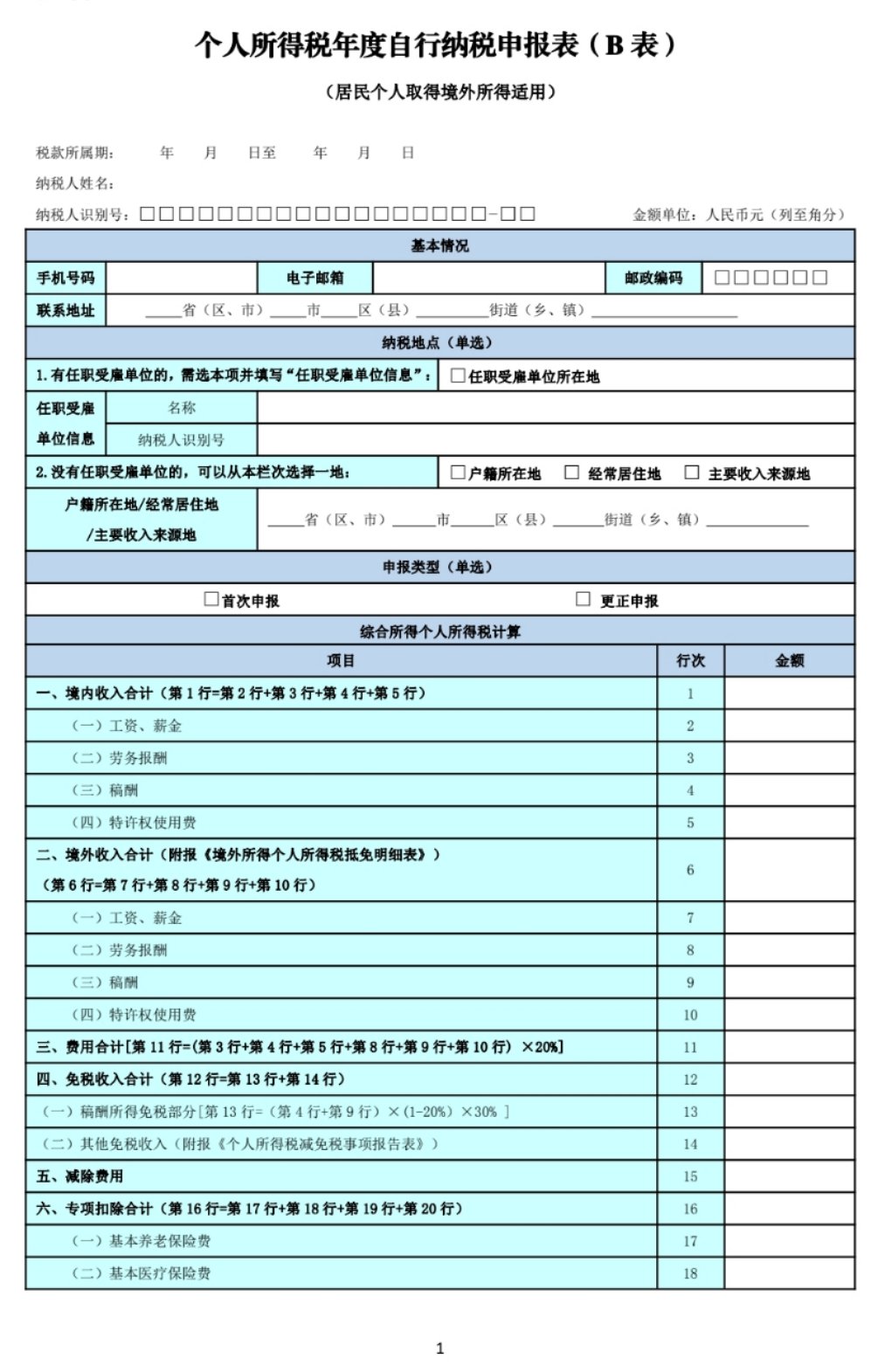 个人所得税年度自行纳税申报表(B表)