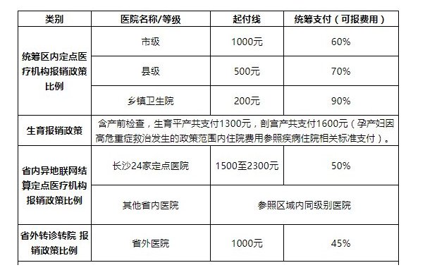 报销比例:政策范围内乡镇卫生院不低于80%,县级医院不低于70%,市级医院不低于60%,省级医院不低于50%。未按照分级诊疗制度办理转诊手续的(危重患者抢救除外),支付比例相应降低15%。