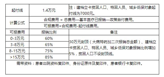 1.城乡居民医保住院基本医疗最高支付限额为15万元,大病二次追补最高支付限额为30万元(一个年度内城乡居民基本医疗保险+大病追补累计最高支付限额为45万元)。