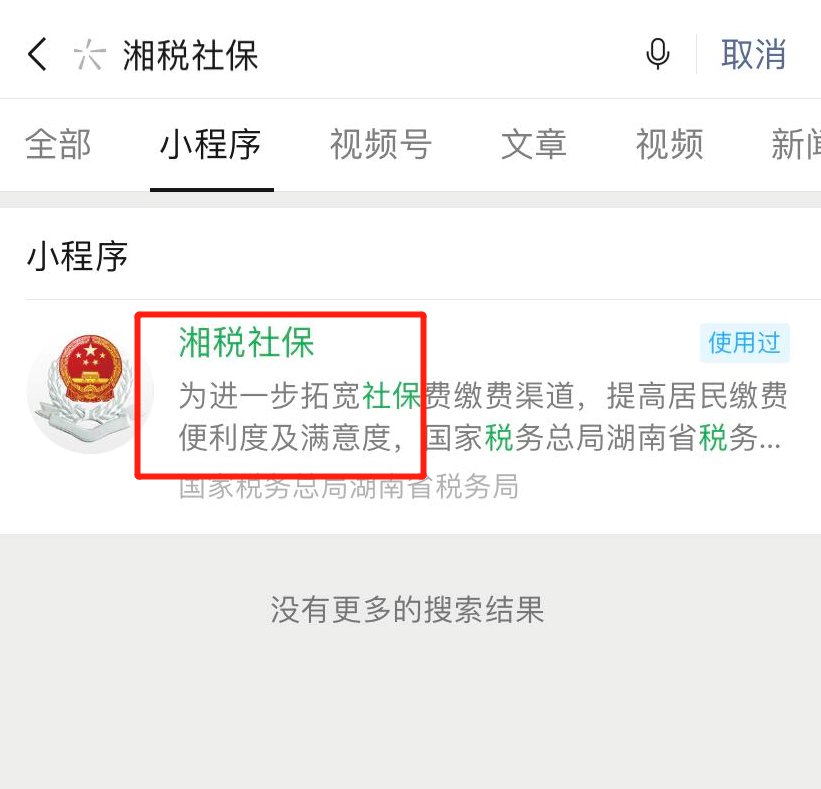 缴费操作步骤:搜索“湘税社保”→进入“湘税社保微信小程序” →注册、登录→选择缴费险种→信息确认→费用支付。