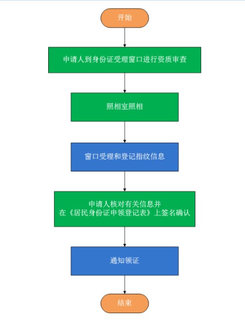 申请人网上提交申请业务信息和资料—湖南省居民身份证管理信息系统受理—支付制证费—县(市、区)公安人口与出入境部门审签—制证并邮寄办结