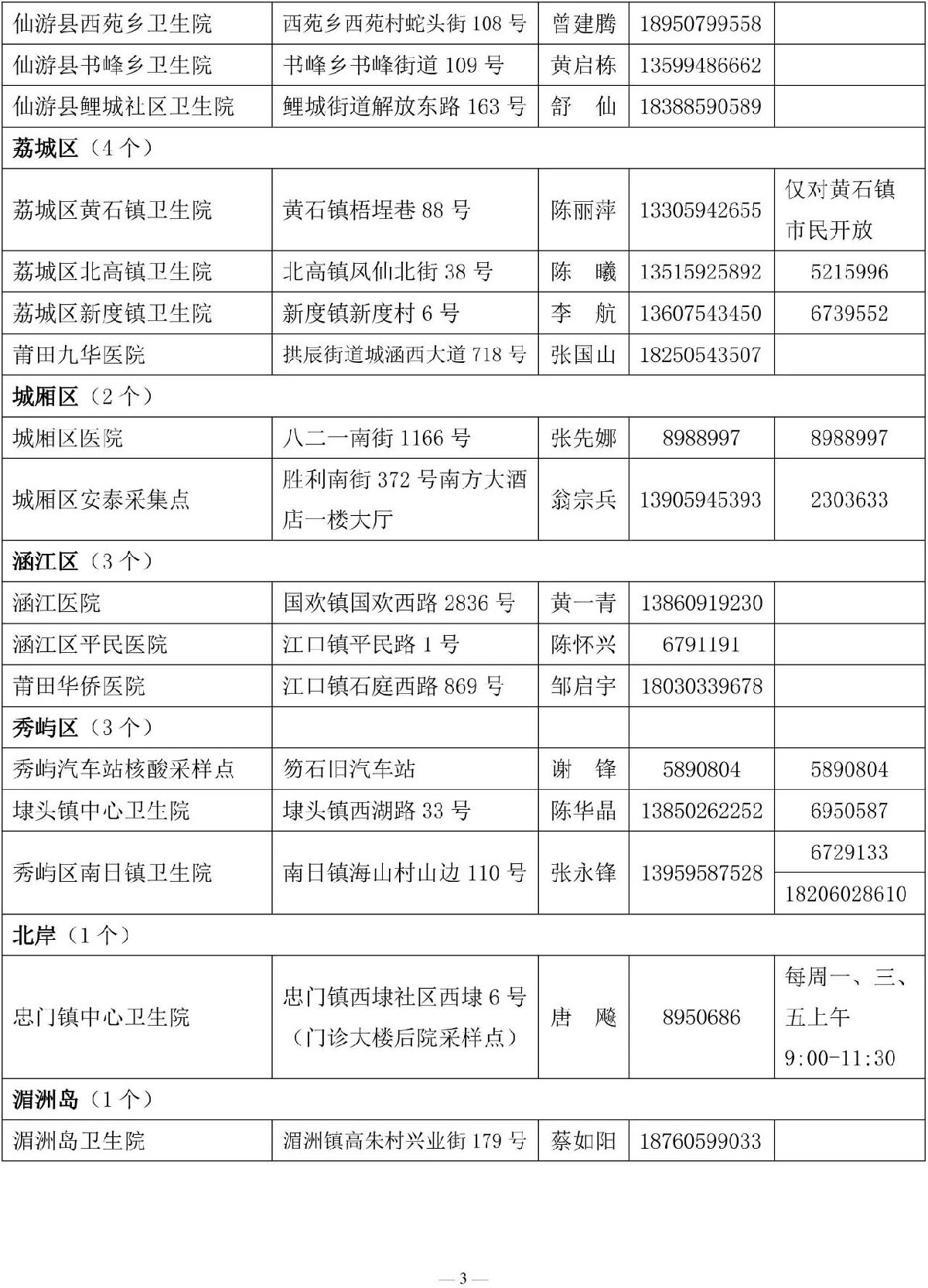 附件:莆田市新冠病毒核酸检测采样机构名单