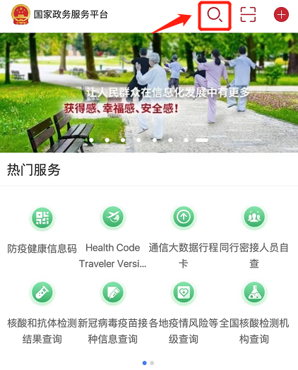 第四步:回到国家政务服务平台APP首页,点击搜索;