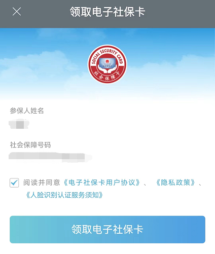 第六步:进入领取电子社保卡界面,勾选阅读并同意相关协议,点击“领取电子社保卡”即可完成申领。