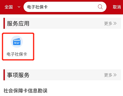 第五步:在搜索框中输入“电子社保卡”并搜索,此时会出现服务应用,点击“电子社保卡”;