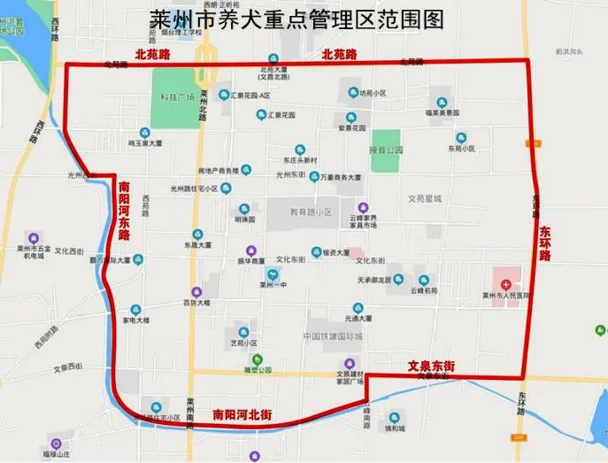 莱州市重点管理区范围:市区内,“东环路以西,南阳河东路以东,南阳河北街、文泉东街以北,北苑路以南”范围内区域。
