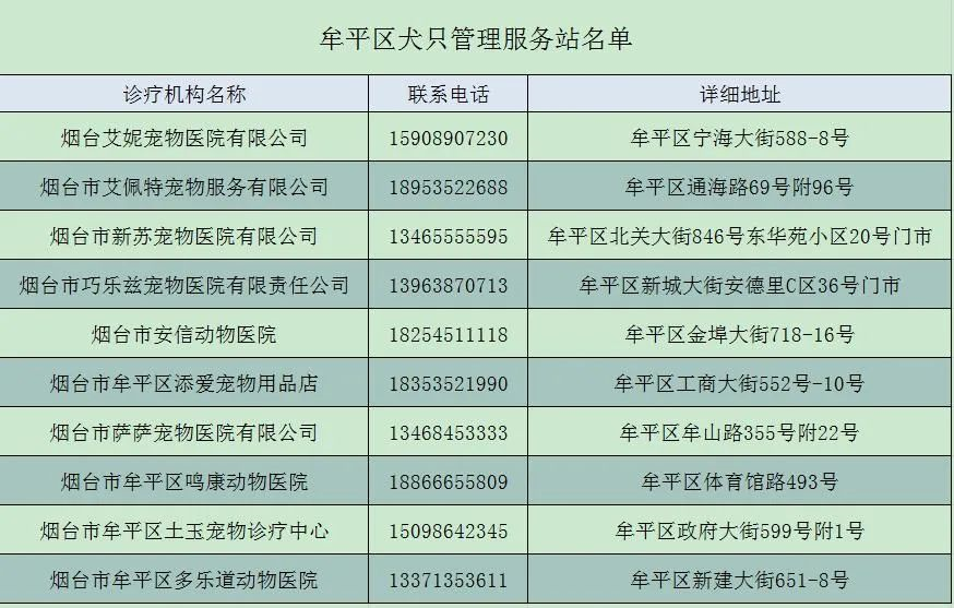 为方便就近办理,牟平分局联合区农业农村局,选定10家宠物医院作为犬只管理服务站,为广大养犬市民办理犬只登记、进一步规范市民养犬行为。