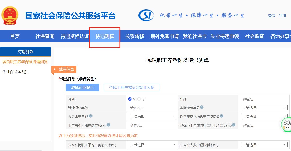 大家可以登录国家社会保险公共服务平台,点击http://si.12333.gov.cn,输入相应参数,就可以预估自己的养老金啦!