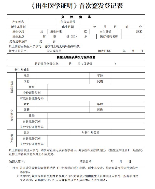 出生证明表如下图所示: