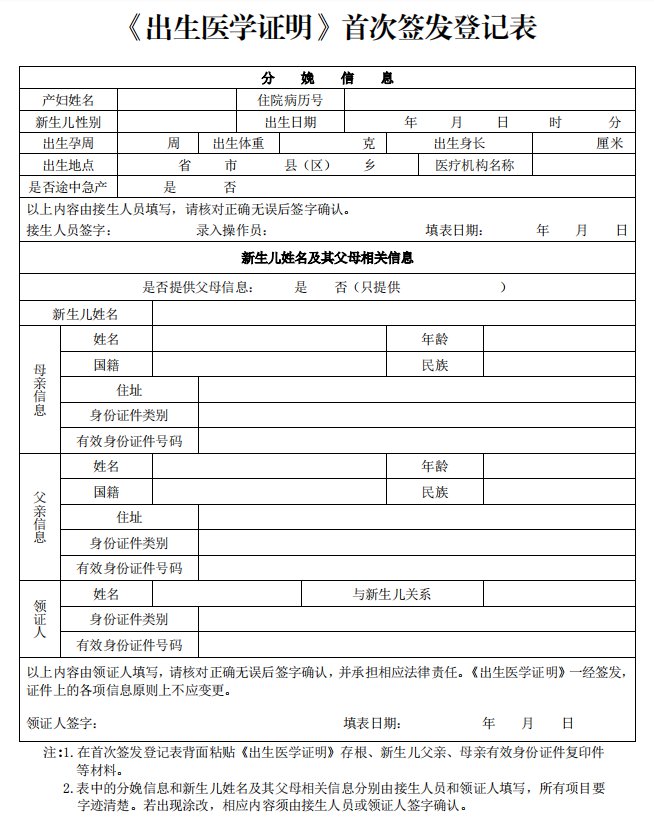 注意:新生儿出生后原则上应在 1个月以内按要求申领出生医学证明。超过1年时间未申领的,首次申领时需向签发机构提交产妇病历复印件(包含首页、分娩记录、出院记录)等,并作出个人信息真实承诺。如无法提供以上资料,须提交有资质的鉴定机构出具的亲子鉴定证明原件。