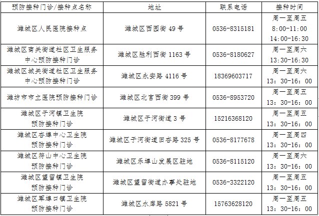 (一)重点人群中的因公、因私出国工作、学习人员,有接种需求且年龄在18-59岁之间的成人可联系潍城区人民医院接种点预约接种,预约电话:0536-8315181。