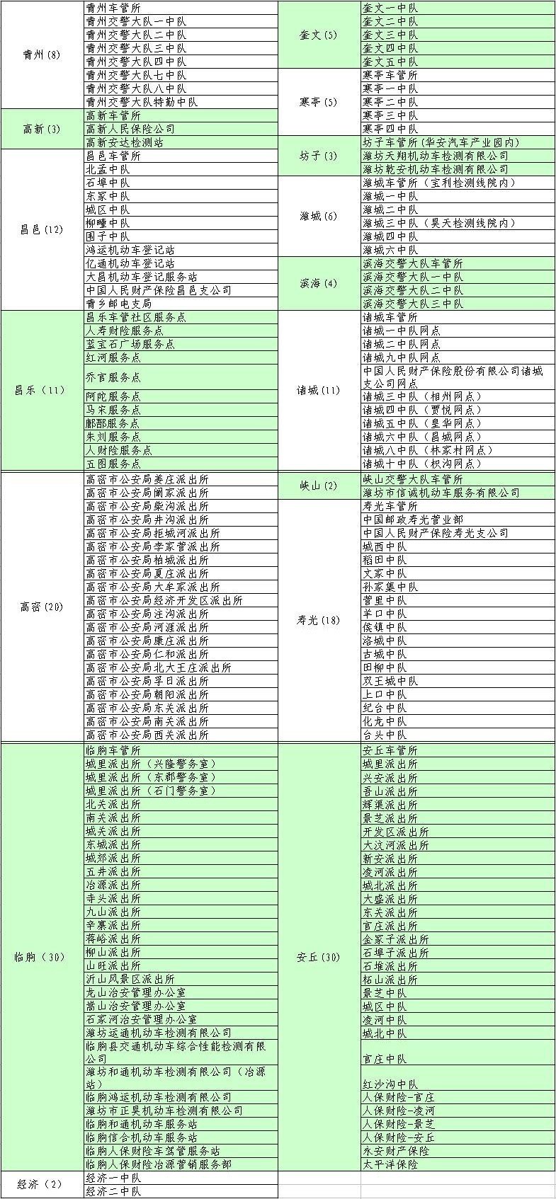 潍坊全市电动车挂牌地点,包括青州、高新、昌邑、昌乐、高密、临朐、经济等地的挂牌地点。
