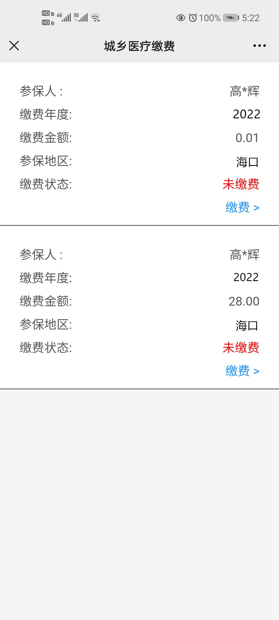 第四步:界面返回姓名、缴费年度、缴费金额、参保地区、缴费状态信息,缴费人确认信息无误后选择待缴费记录,点击【缴费>】。