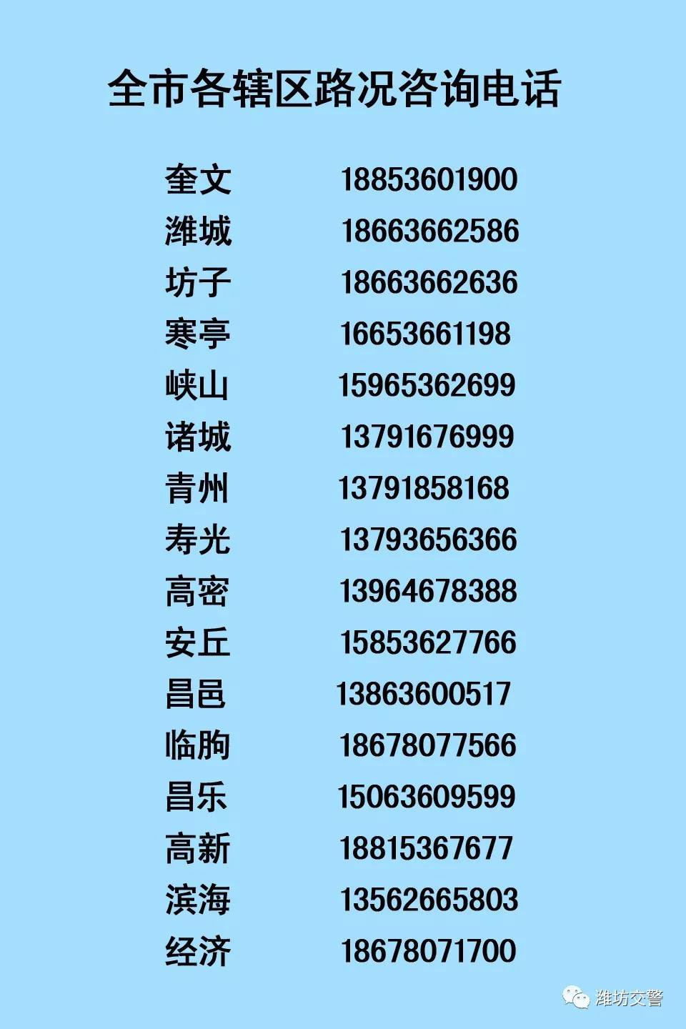 【潍坊全市各县市区路况咨询电话】