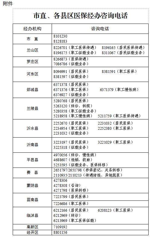 附件:临沂市医保系统切换停机期间各经办机构咨询电话
