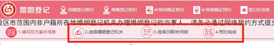第十一步:根据提示选择婚姻登记机关,选择日期和时间段即可完成预约。