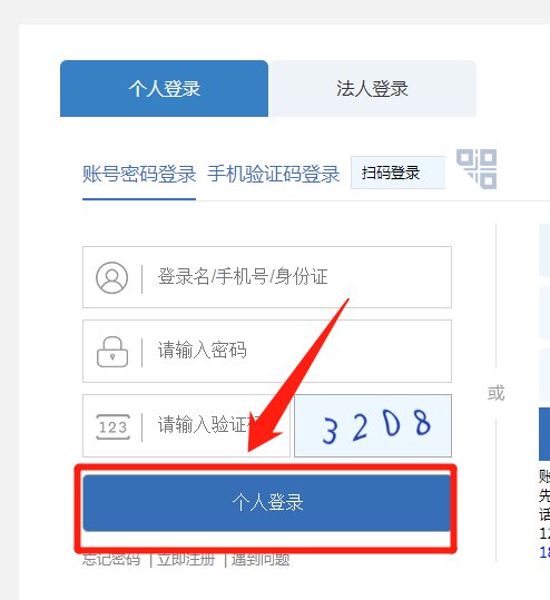 第四步:输入账户及密码后,点击“个人登录”,进入页面后根据提示完成即可