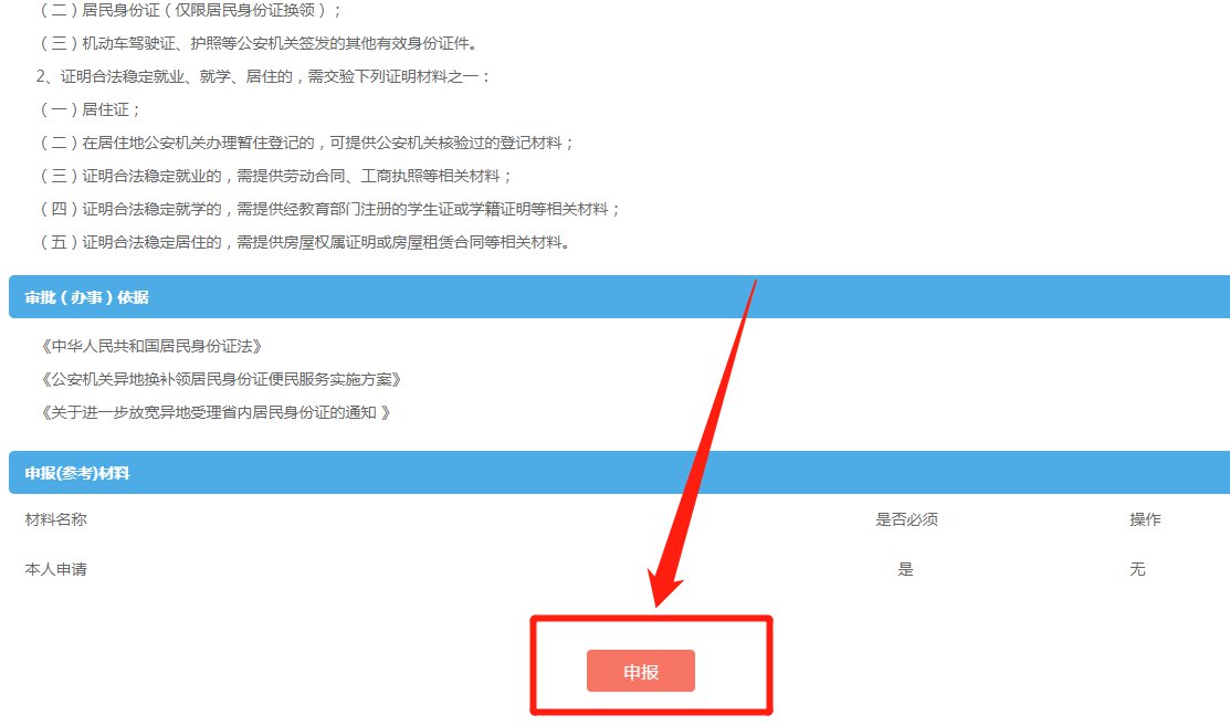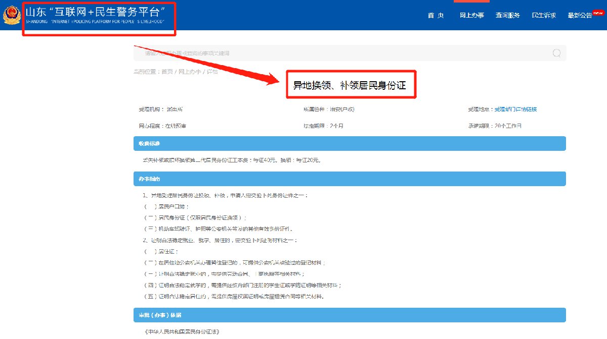 第一步:进入山东“互联网+民生警务平台”中的“异地换领、补领身份证”页面