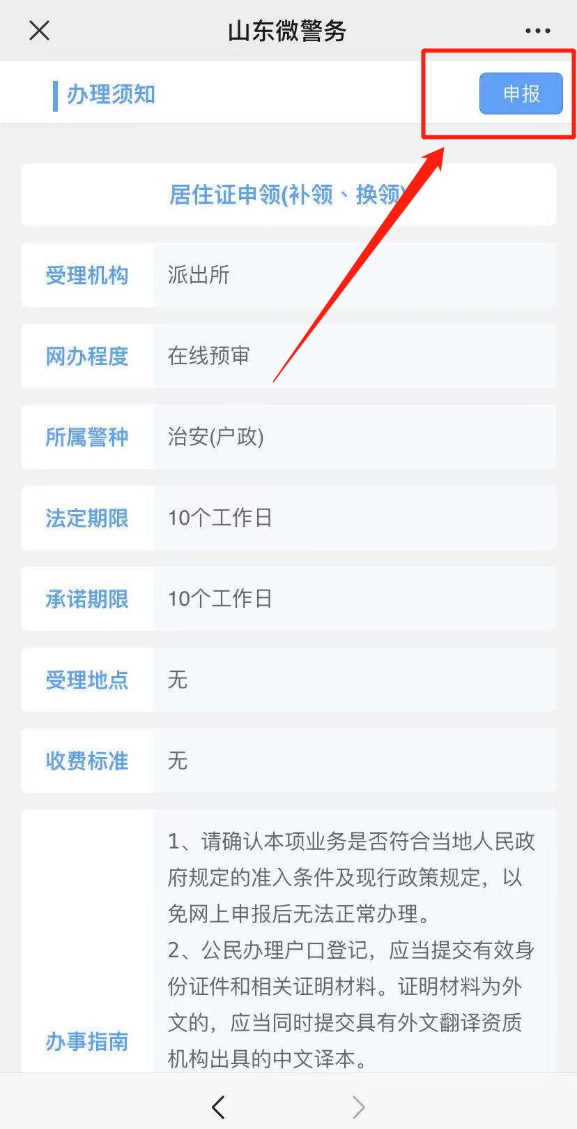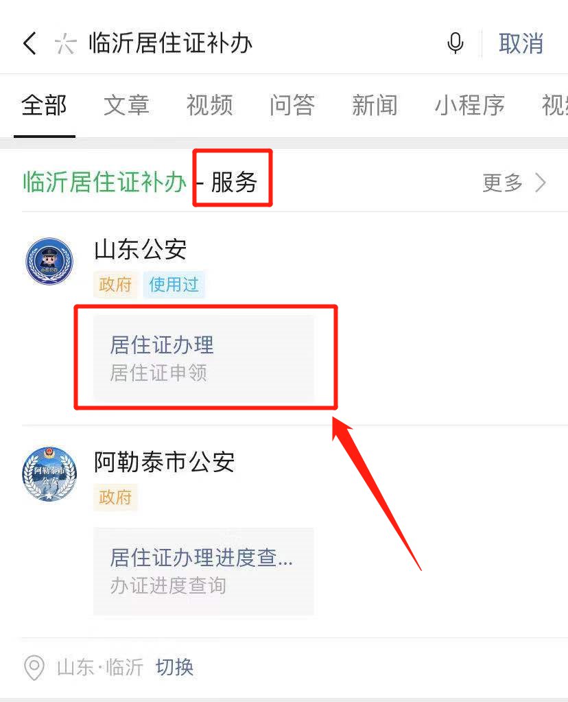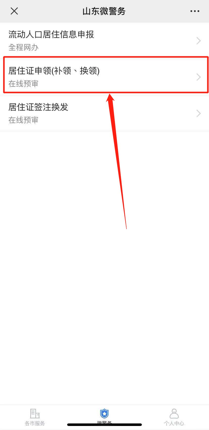第二步:选择服务选项中的“山东公安-居住证办理”