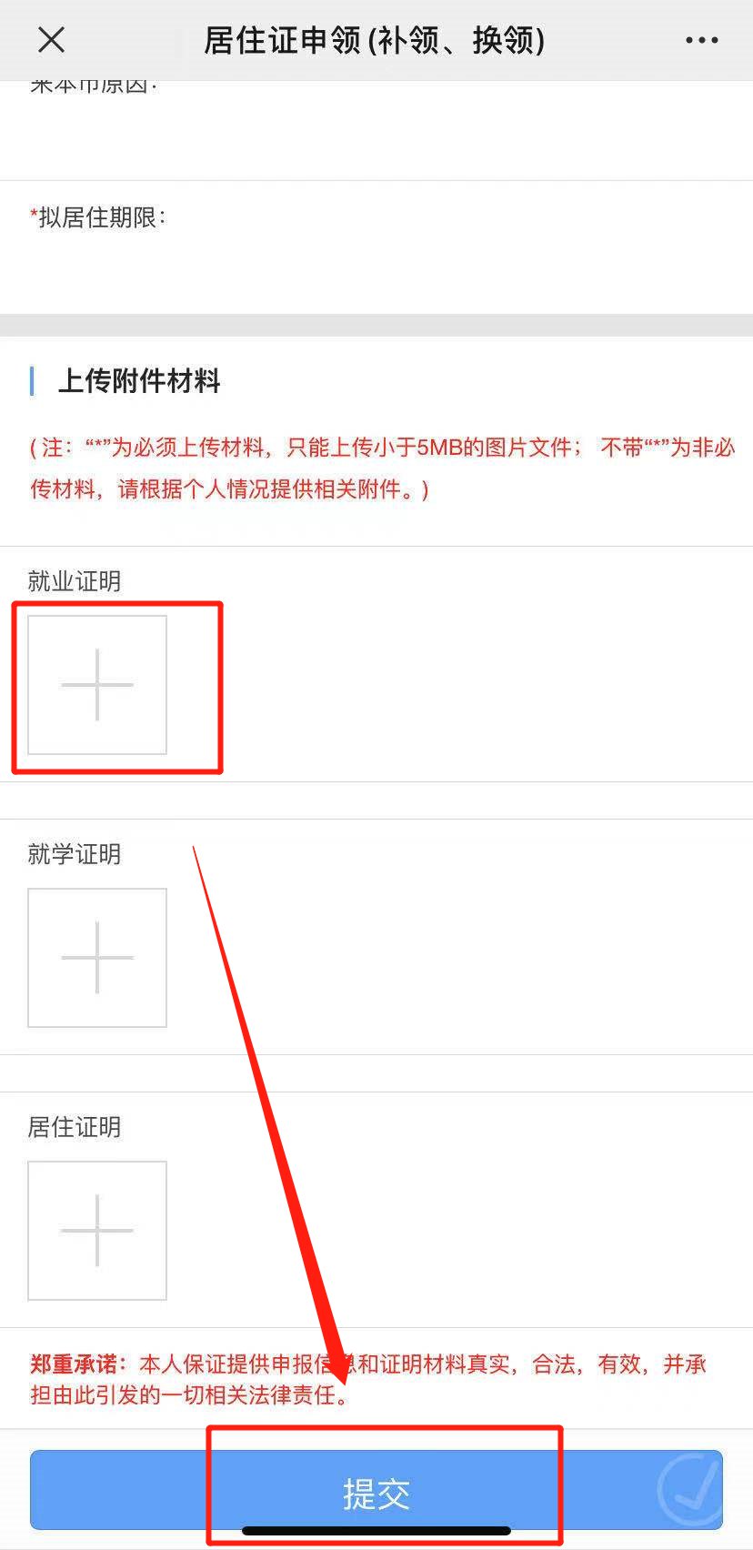第六步:根据要求上传资料附件,并点击“提交”即可
