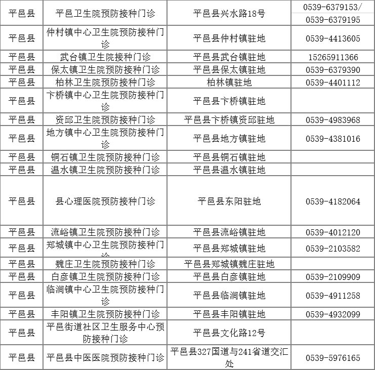 临沂市平邑县接种点