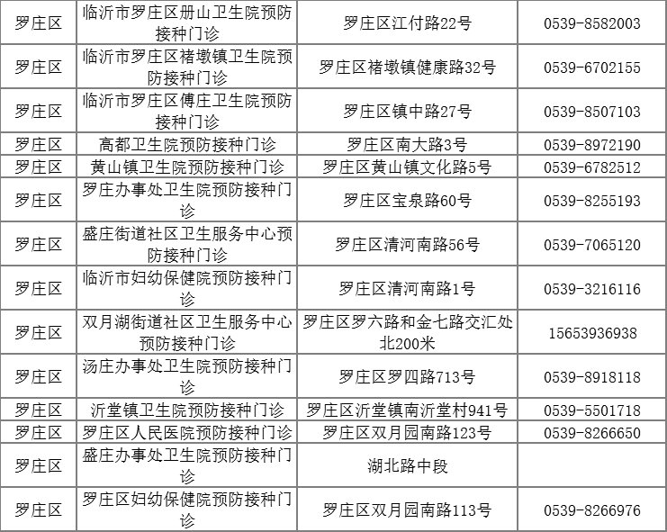一、临沂市罗庄区疫苗接种点及电话