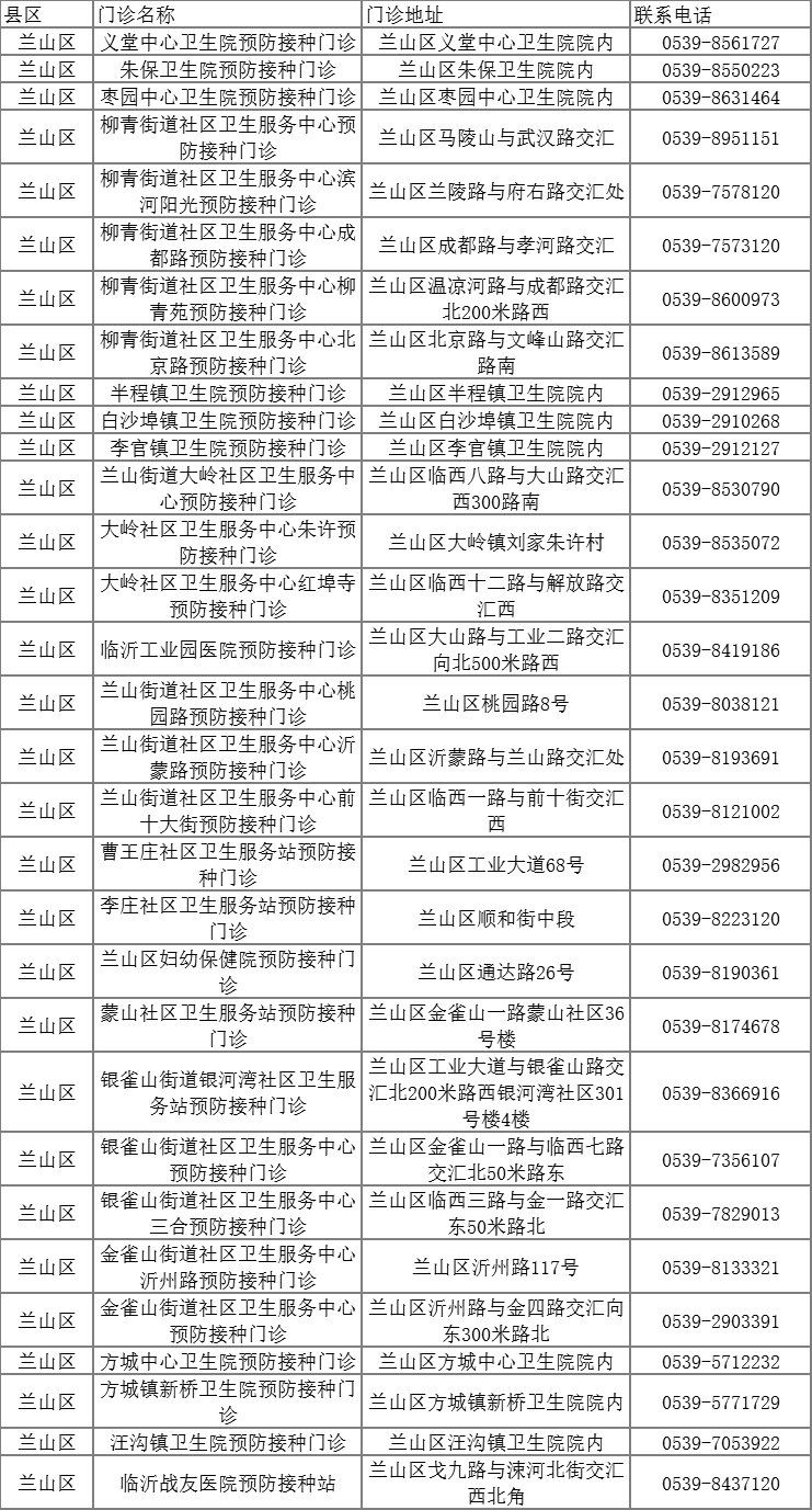一、临沂市兰山区疫苗接种地址及电话