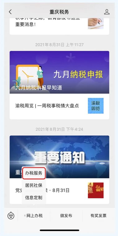 重庆税务于2021年9月1日正式推出手机缴纳帮税新渠道。
